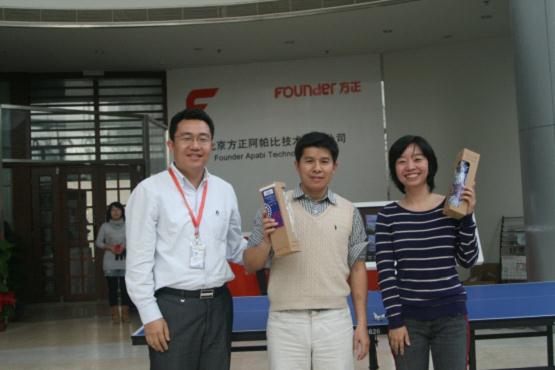 為了強健大家的體魄,加深同事之間的溝通與交流,10月下旬方正阿帕比首屆乒乓球比賽火熱開(kāi)幕。經(jīng)過(guò)9個(gè)比賽日的激烈爭奪,方正阿帕比首屆乒乓球賽圓滿(mǎn)落幕,最終名次如下: