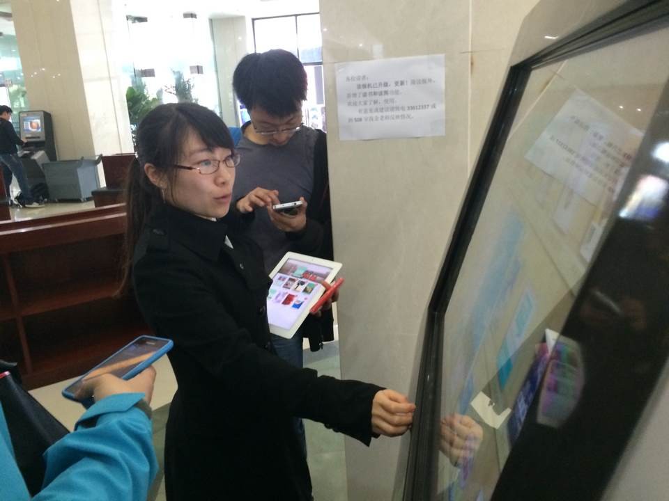 華東理工大學(xué)現場(chǎng),追逐新鮮的年輕讀者紛紛駐足觸摸屏前,拿起手機掃描圖書(shū)館大廳的觸摸屏二維碼進(jìn)行借書(shū)。一位長(cháng)相甜美的女生興奮地跟圖書(shū)館老師說(shuō):“我以前都不知道咱們圖書(shū)館有那么多電子書(shū),我都是在網(wǎng)上找免費下載的txt格式的電子書(shū)看,可費勁兒了。這個(gè)觸摸屏借書(shū)太方便了,《甄嬛傳》、《致青春》、《Gone with the Wind》竟然都有,太激動(dòng)了!”